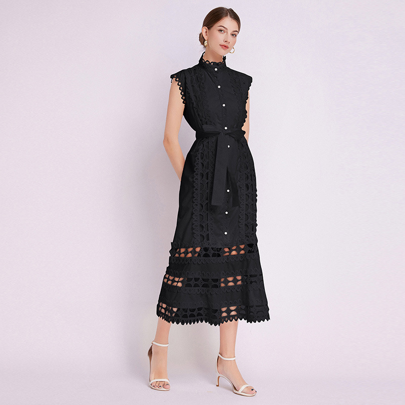 Elegant Hollow Lace Long Dress for Women...